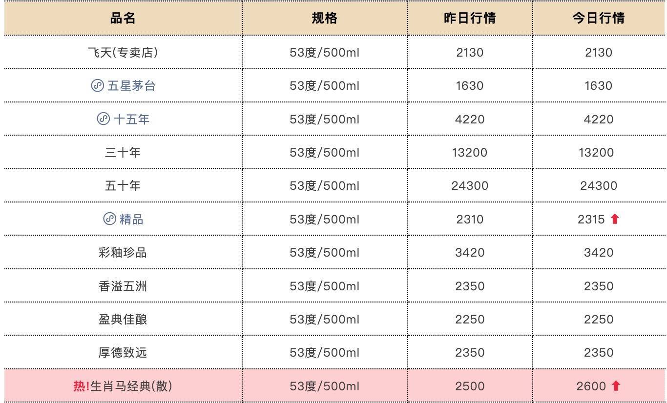 和月初暴跌的行情相比,生肖马经典茅台散装价格也有所回暖,较前一日上涨100元,报2600元/瓶。